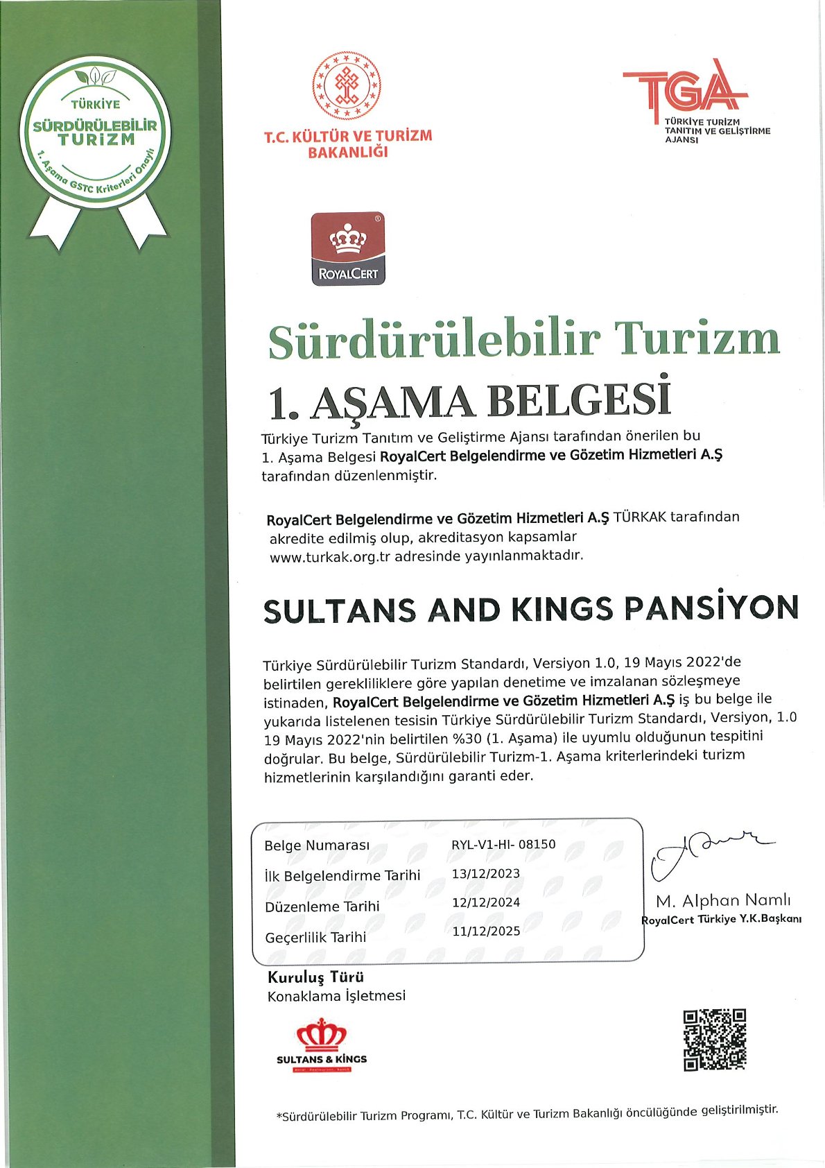 Biz,Sultans And Kings Pansiyon olarak, Turizmin çevremiz üzerindeki etkilerini aza indirmek amacıyla çıktığımız bu uzun yolda, atık yönetimi, doğal kaynak kullanımı, çalışanlara sağlık, güvenlik ve çocuk koruma konularında bilgilendirme ve eşit hakların tanınması faaliyetleri ile ILO Standartlarının tüm sorumluluğunu alıyoruz ve insan haklarına saygı gösteriyoruz. Bulunduğumuz topluluk ile entegre olma ve toplumsal sorunların çözümünde yer alma konularında yaptığımız çalışmaların, turizmde sürdürülebilirliğin sağlanmasına katkı sağlayacağı inancındayız.
